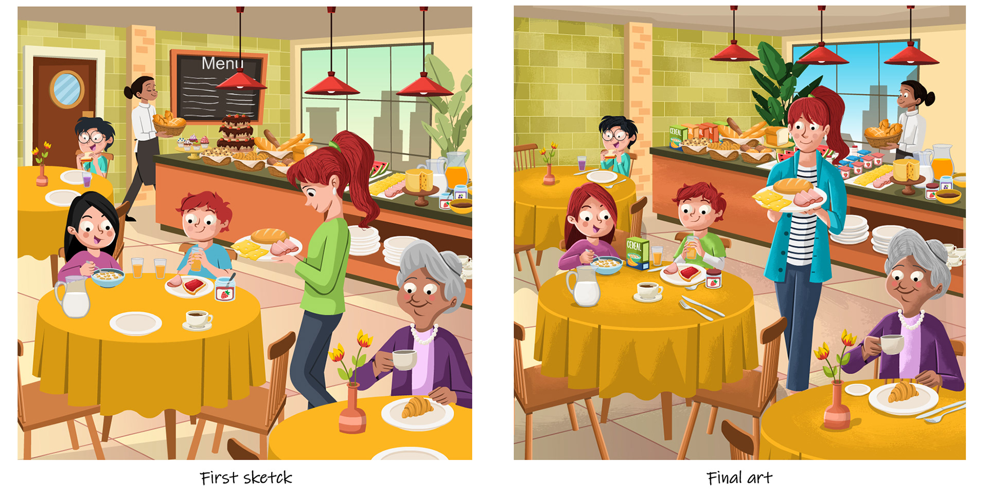 The artworks will help students understand the target words efficiently. Learners can learn how the words are used in specific situations and apply in their writings.
